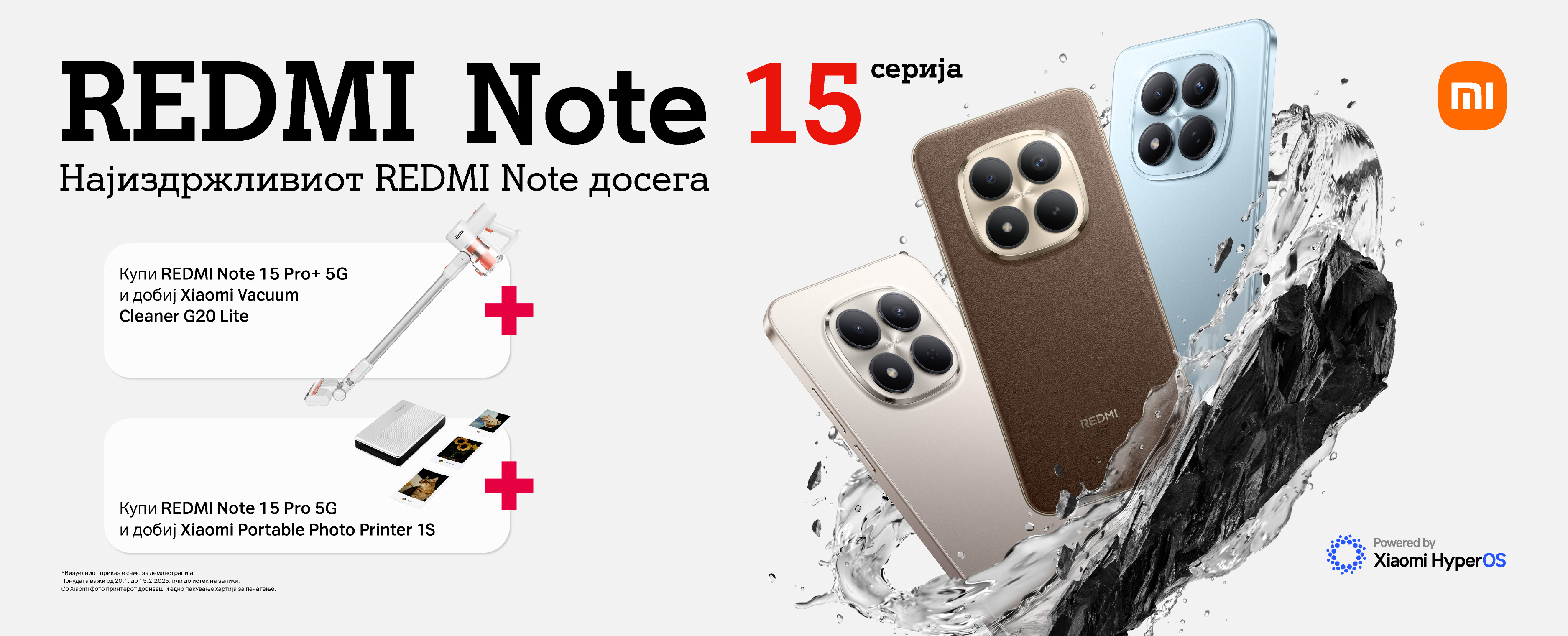 Понудата важи за сите приватни и деловни корисници кои ќе нарачаат уред Redmi Note 15 Pro 5G, Redmi Note 15 Pro + 5G или Redmi Note 15 за времетраење на понудата од 20.01.2026 до 15.02.2026.